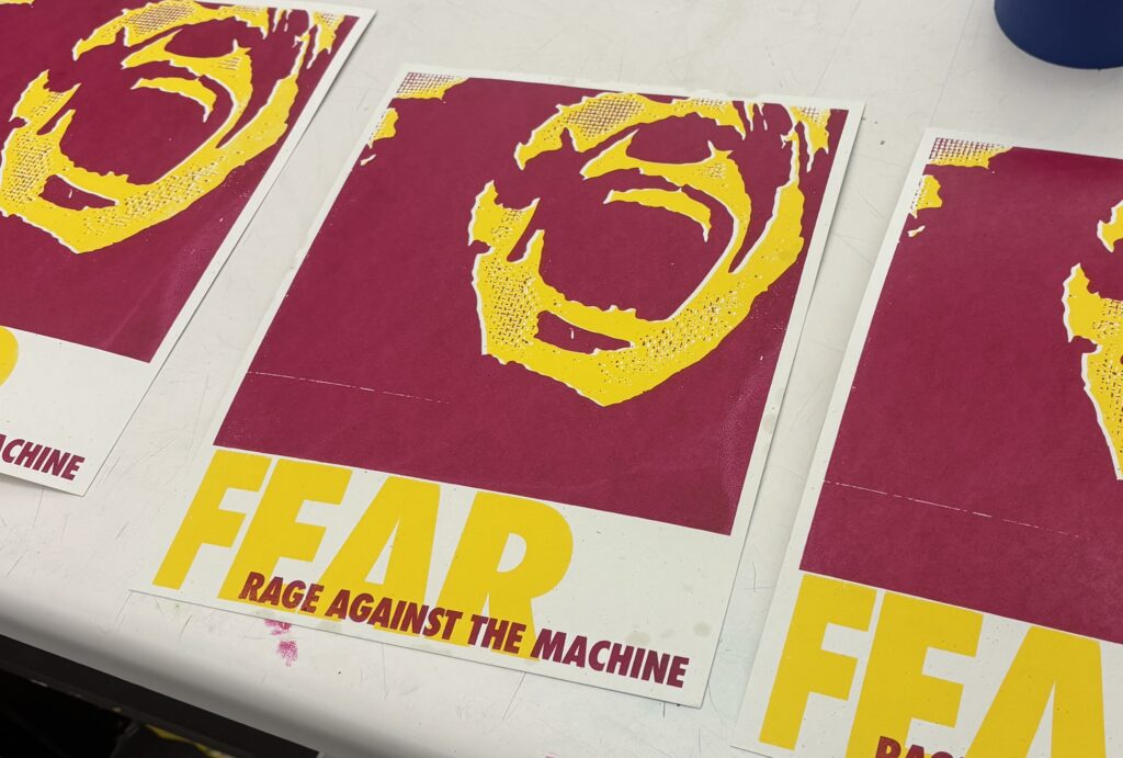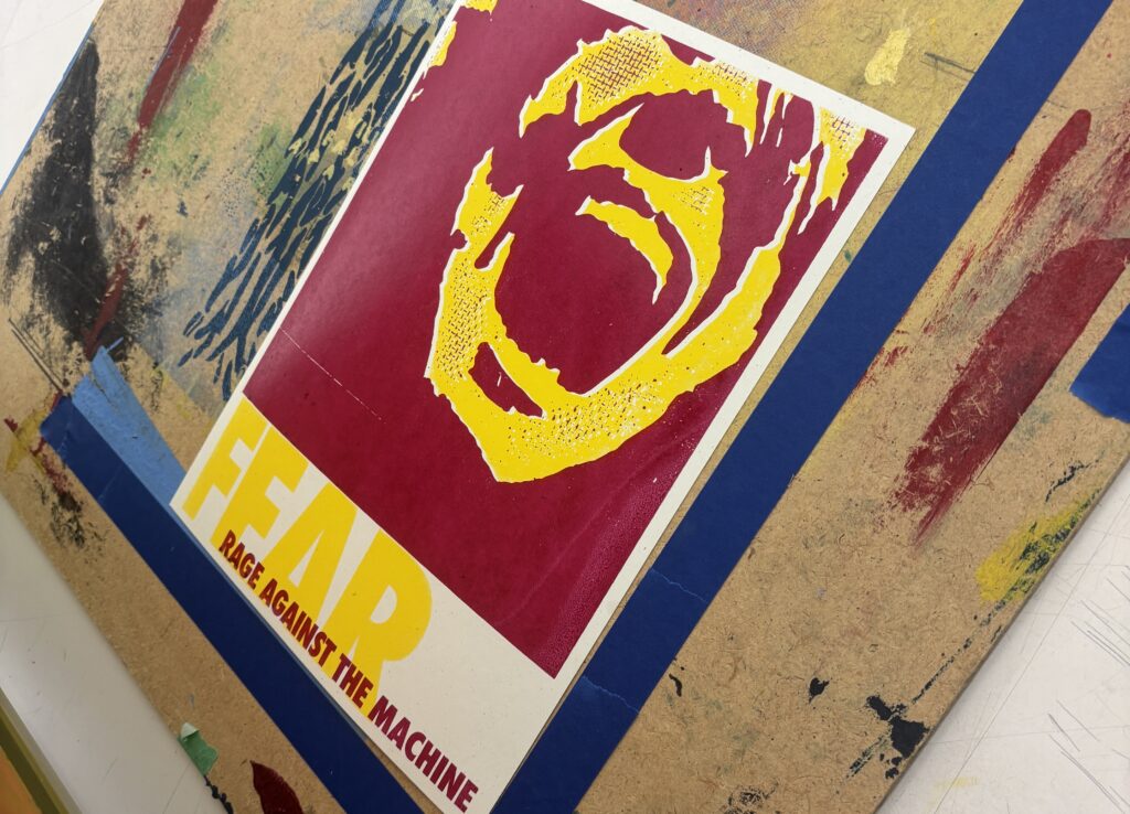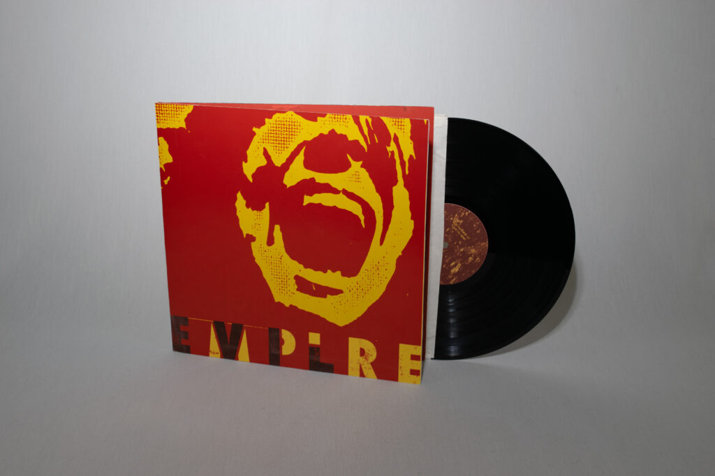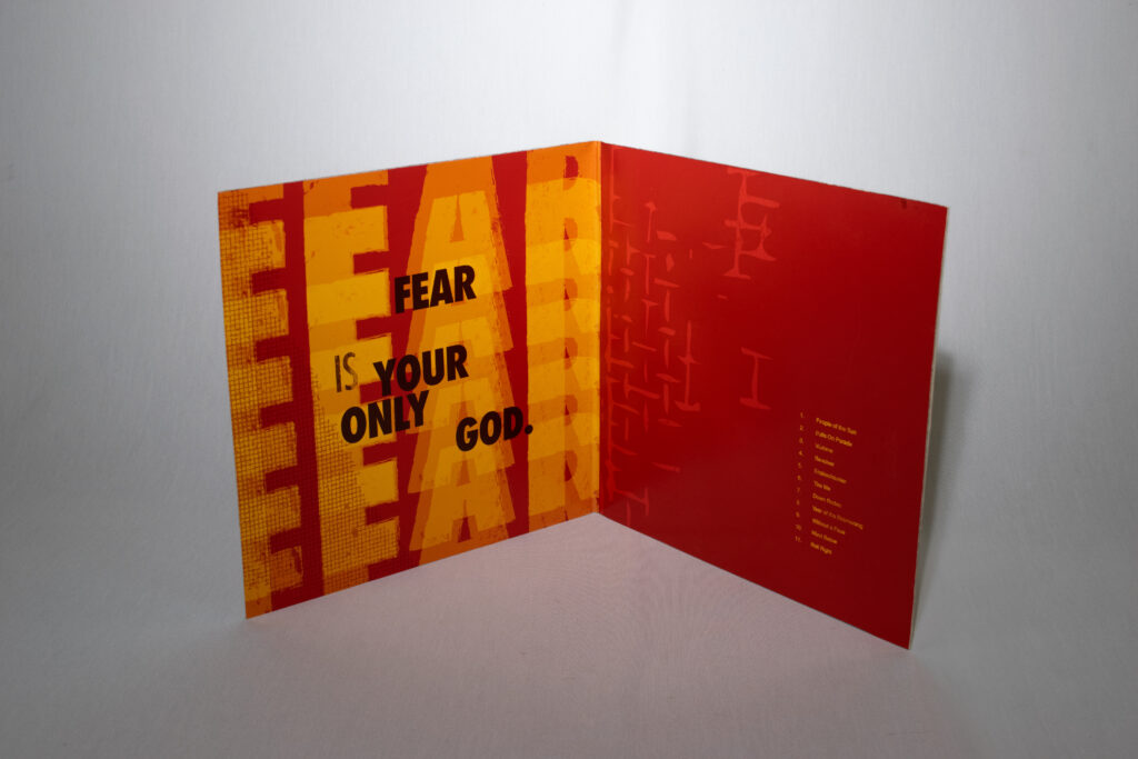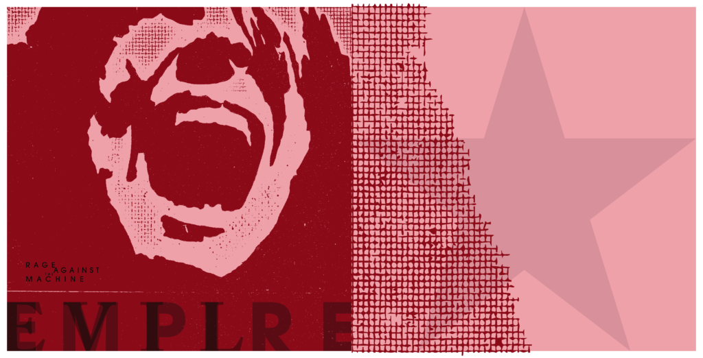 This was another project for Junior Art Review where I chose to redesign Evil Empire by Rage Against the Machine. For the cover I used a collograph print which got scanned and edited from there to achieve this grungy, weathered texture.